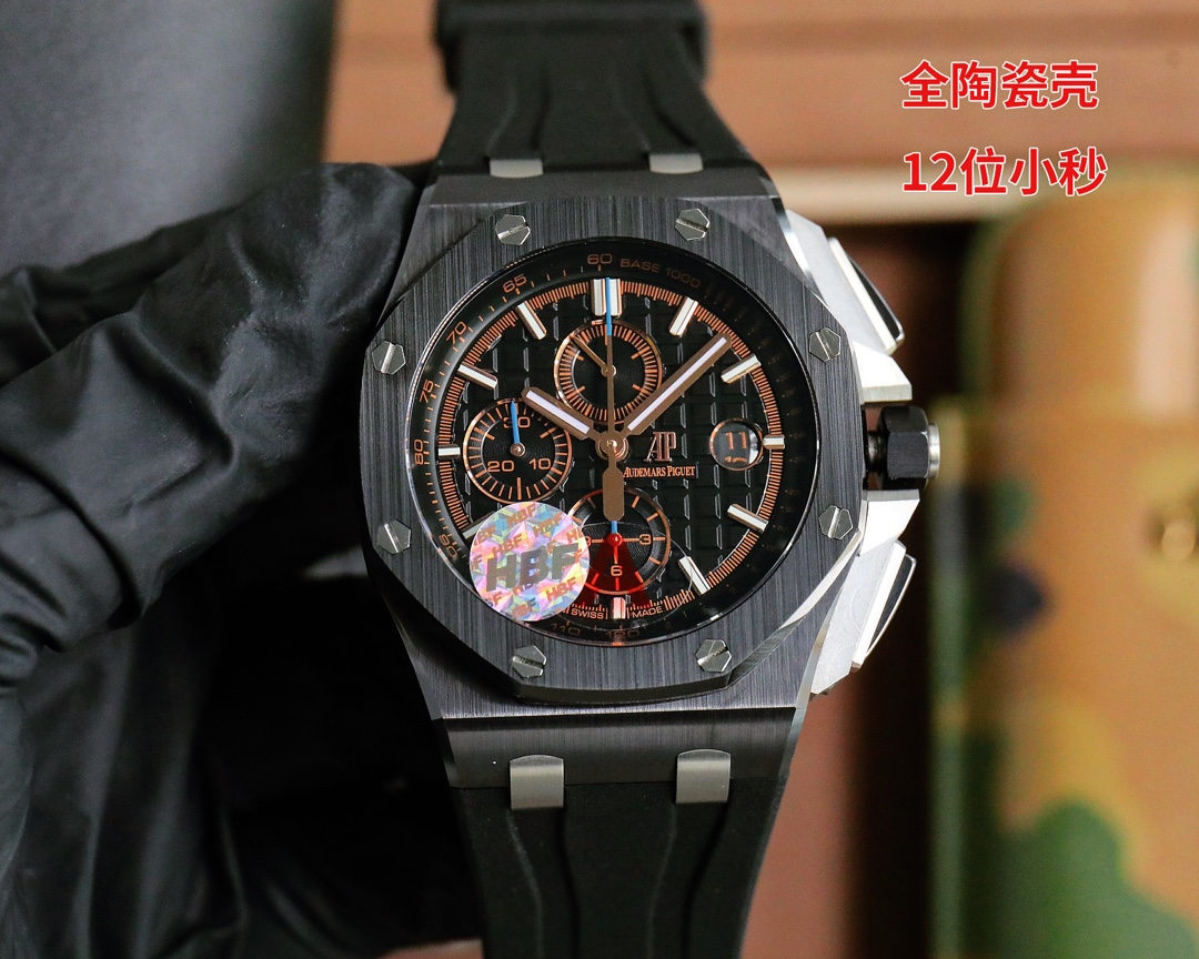 All ceramic case ?????? Audemars Piguet Royal Oak Offshore 26402 Series 44MM watch to kill all the versions on the market "Top edition, no fake at first glance" on the original basis, dedicated research and development breakthrough barriers "Break the original blockade technology, synchronized with the original exclusive chronograph, make the wrist fit to the greatest extent when worn, It greatly enhances the comfort of wearing and also eliminates the embarrassing situation of being fake at first sight. 1. The case and bezel are made of imported zirconia without any pigments. They are forged under extremely high pressure and temperature to form ultra-high-density colored ceramics. 2. Adopting the latest CNC-level polishing technology, every Angle of the entire watch case is perfectly processed. 3. Each hexagonal screw is on the same plane as the watch frame, without the slightest protrusion or depression, truly embodying what top-notch replica art is. The dial is set against the backdrop of Audemars Piguet's classic large checkered pattern, with a clearly layered grid arrangement that has been perfectly polished, vividly showcasing the craftsmanship of the artisans. The mirror surface is made of double-sided sapphire lenses, and the strap is made of fluororubber tape. The movement adopts the 7750-modified 3126 chronograph movement, with 12-position seconds, 12-hour and 30-minute chronographs at the six and nine positions, perfectly restoring all the functions of the original version. Each watch undergoes manual QC to ensure the stability of the movement. It is truly impeccable. Welcome all watch enthusiasts to appreciate