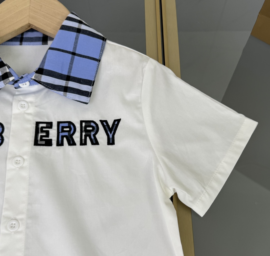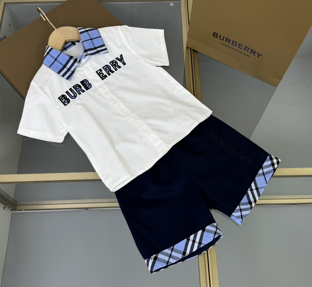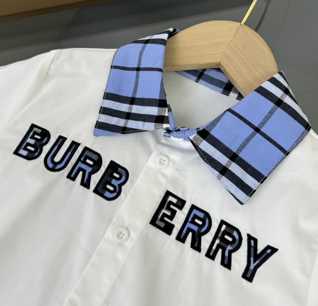 Burberry, Burberry, high-end children's clothing, boy's suit and blue plaid shirt, custom woven cotton fabric, blue and white colours, upper body comfortable, good-looking, code number: 110/120/130/140/150/160 cm