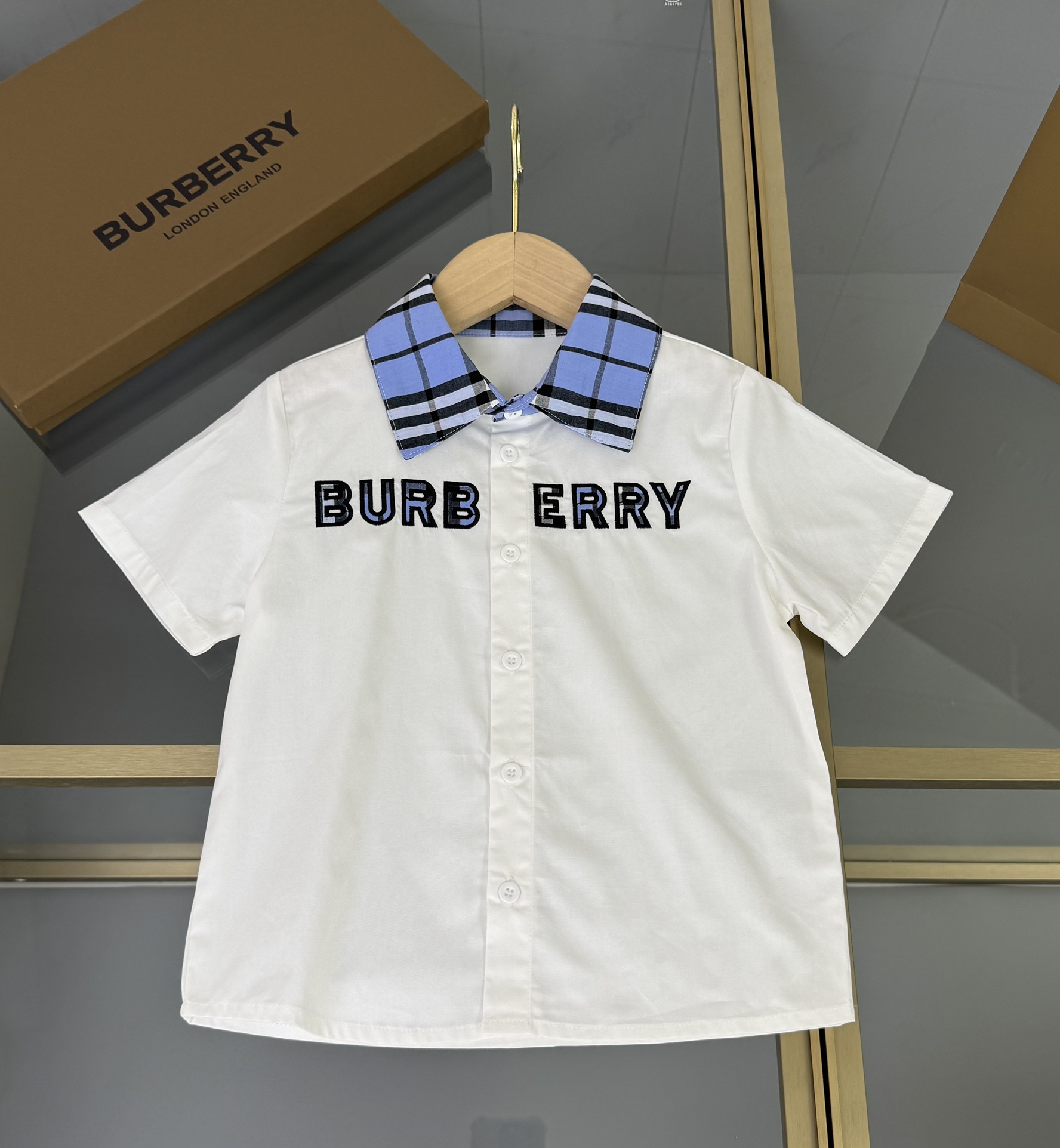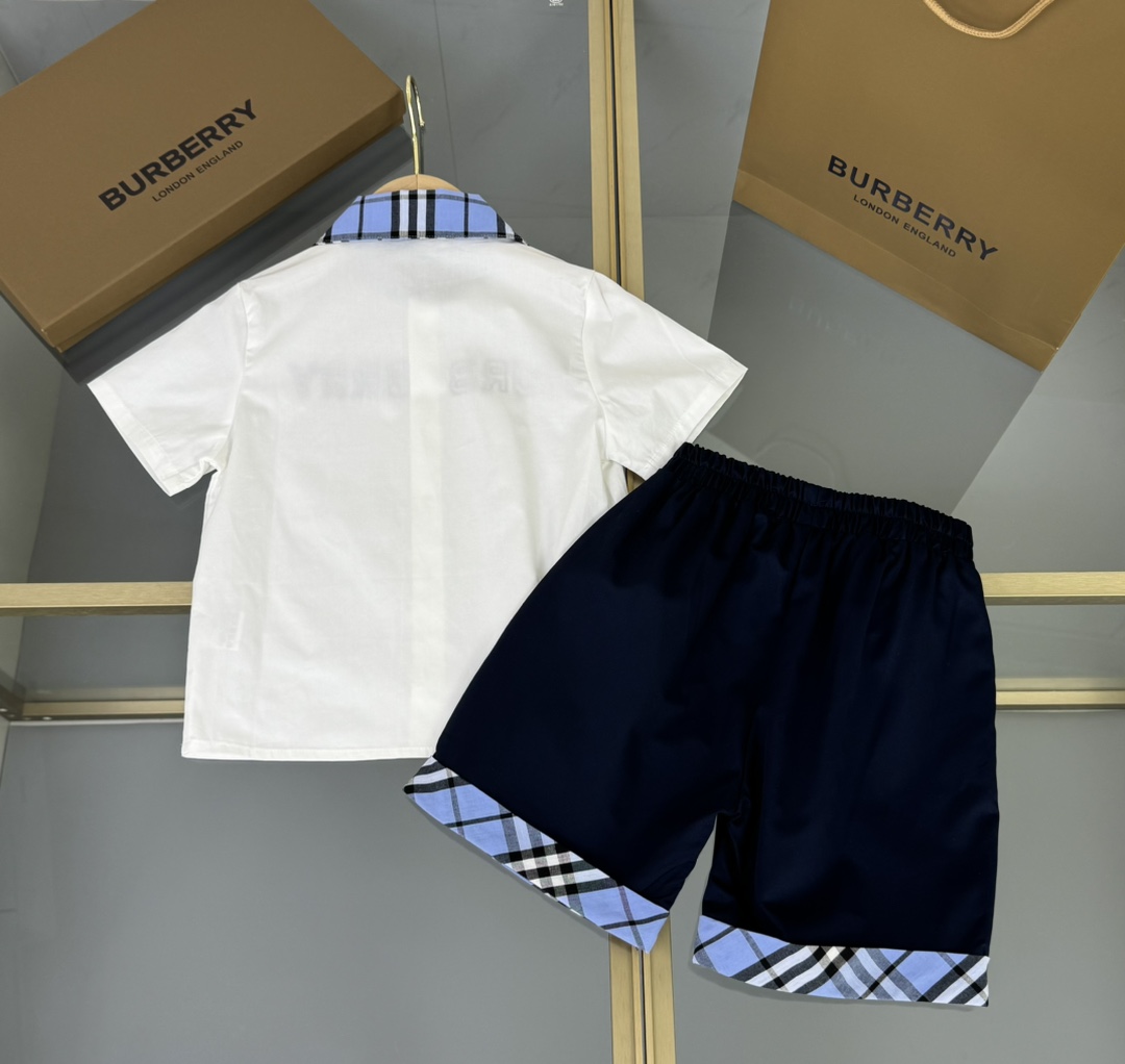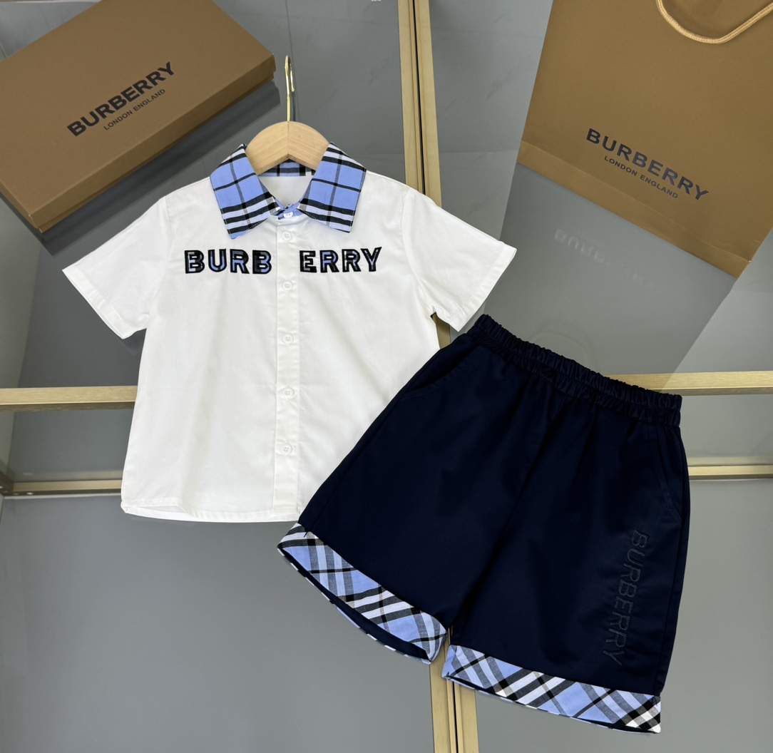 Burberry, Burberry, high-end children's clothing, boy's suit and blue plaid shirt, custom woven cotton fabric, blue and white colours, upper body comfortable, good-looking, code number: 110/120/130/140/150/160 cm