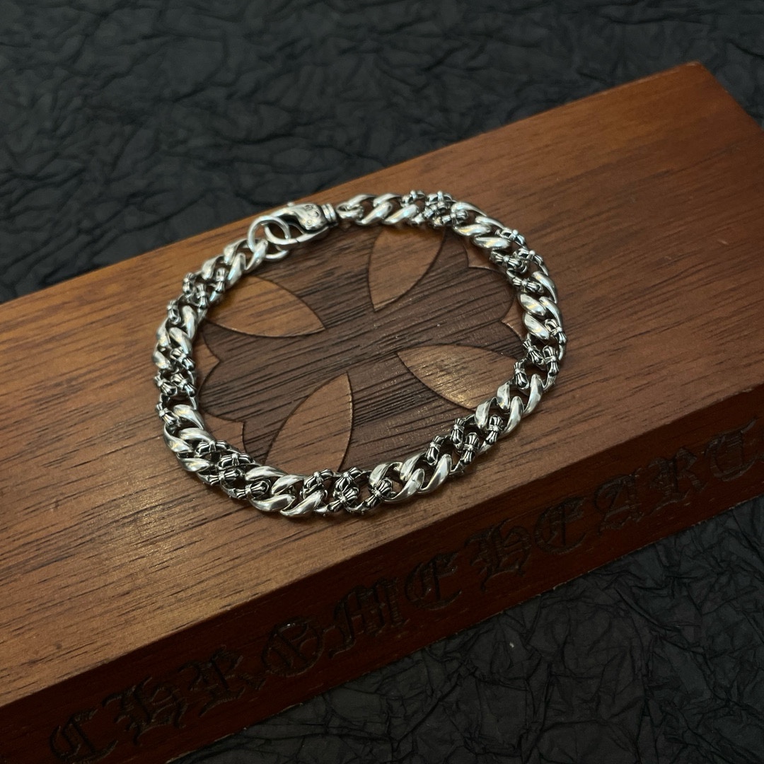 New batch [Counter quality] Chrome Hearts classic retro Cuban bracelet, cross flower concave-convex design, different pattern design styles present uniqueness. The cross scout flower is the symbol of Chrome Hearts, so it remains popular for a long time. Genuine printed Chrome Hearts, different from the ordinary light version in the market, with quality benchmarking Look at the details of the lettering, the degree of retro and aged gray oxygen. Seiko version!! Handcrafted ~ GENUINE MOLD ?? Trendy FASHION MUST-HAVE men and women CAN wear the same couple official website original rock punk Thai silver style Retro element TRENDY VERSATILE! Bracelets/Bracelet
