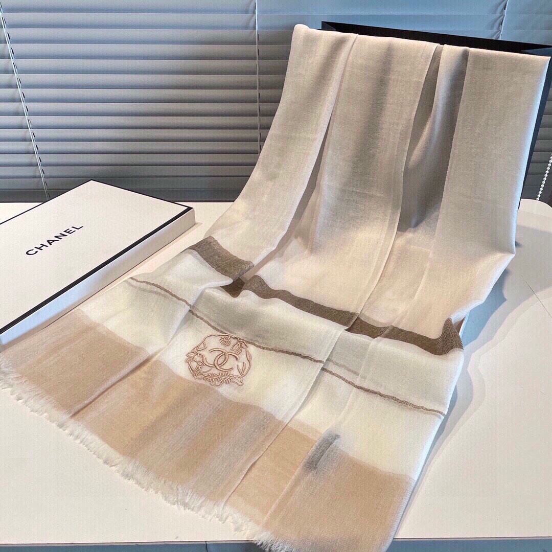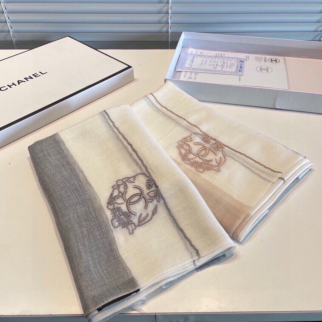 New ?? Chanel cashmere scarf ?? feels amazing ?? Top-quality ?? Genuine cashmere masterpiece ?? Exquisite embroidery and color matching ?? eye-catching ?? Beautiful beyond description [color][Color][color] Material: top-quality cashmere ?? Size 90x200 This pure cashmere scarf is definitely good value for money