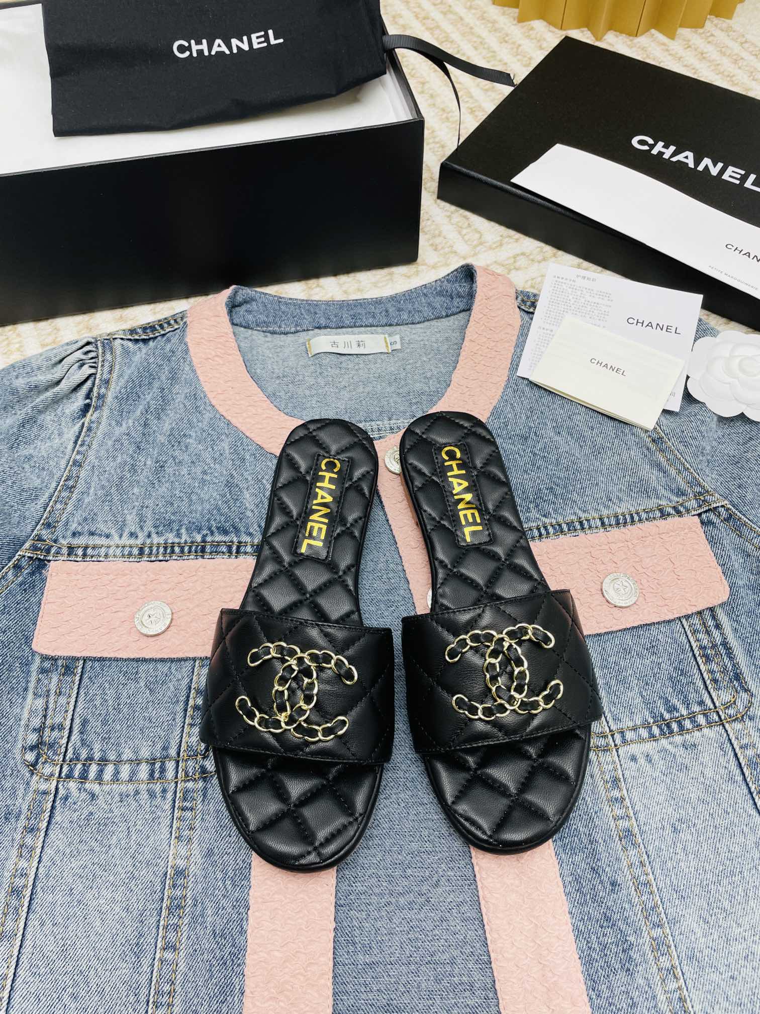 Factory PRICE ???? women shoes factory ????????*?? Chanel 2023 new slippers ?? Fragrant milk powder ?? Essential items for spring and summer pairing! So fairy-like ~ Upper: Custom original fabric/custom original hardware buckle Outsole: Italian imported genuine leather outsole Size: 35-42 (40.41.42, custom-made, non-returnable and non-exchangeable)Chanel