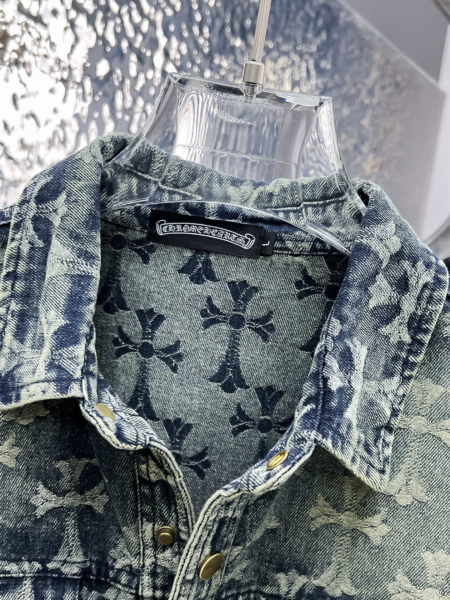 The long-sleeved shirt denim jacket is made of imported denim fabric, featuring logo jacquard and heavy washing. It is a shirt-shaped top jacket decorated with metal buttons, presenting a crisp and stylish look. With a unique Angle, it offers a brand-new interpretation of fashion and is a versatile choice! Size: M-3XL