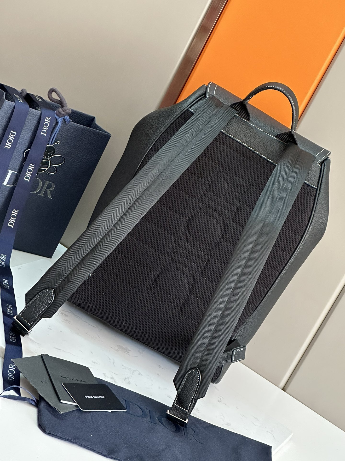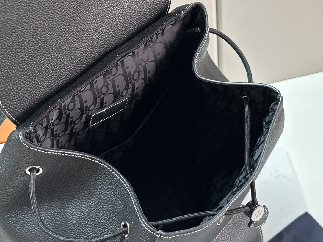 ? ? ? ? Top Original Order This saddle backpack features a stylish original design that highlights saddle style. The black grainy cowhide is paired with contrasting stitching, and the front is decorated with the Dior logo. The space is spacious and features a partition for storing various daily necessities. The front flip-top saddle pocket can hold wallets, keys, headphones or mobile phones, making it easy to access. Practical and versatile, it is the finishing touch for all kinds of looks. Black grainy cowhide paired with contrasting stitching The front is decorated with a metal-clad brass Dior logo The inner side is decorated with the Dior logo Flip cover and drawstring design Adjustable shoulder straps with padded mesh fabric Leather top handle The rear side of the handbag is reinforced with quilted technology knitted fabric and decorated with the Dior logo Front flip pocket Internal laptop compartment Contains a dust-proof bag Dimensions: 41.5 x 28.5 x 15 cm (Length x height x Width) Number: 93329, small