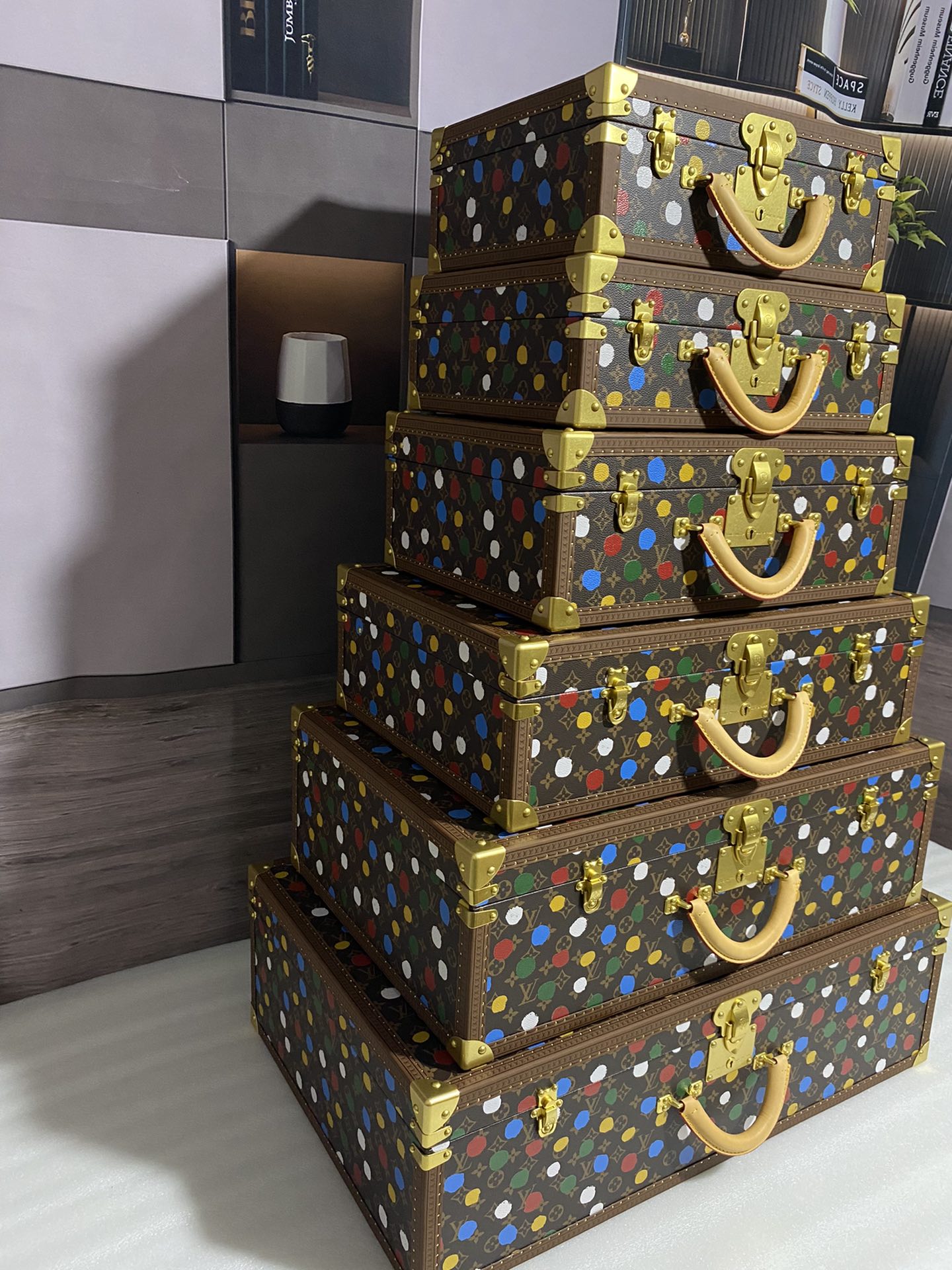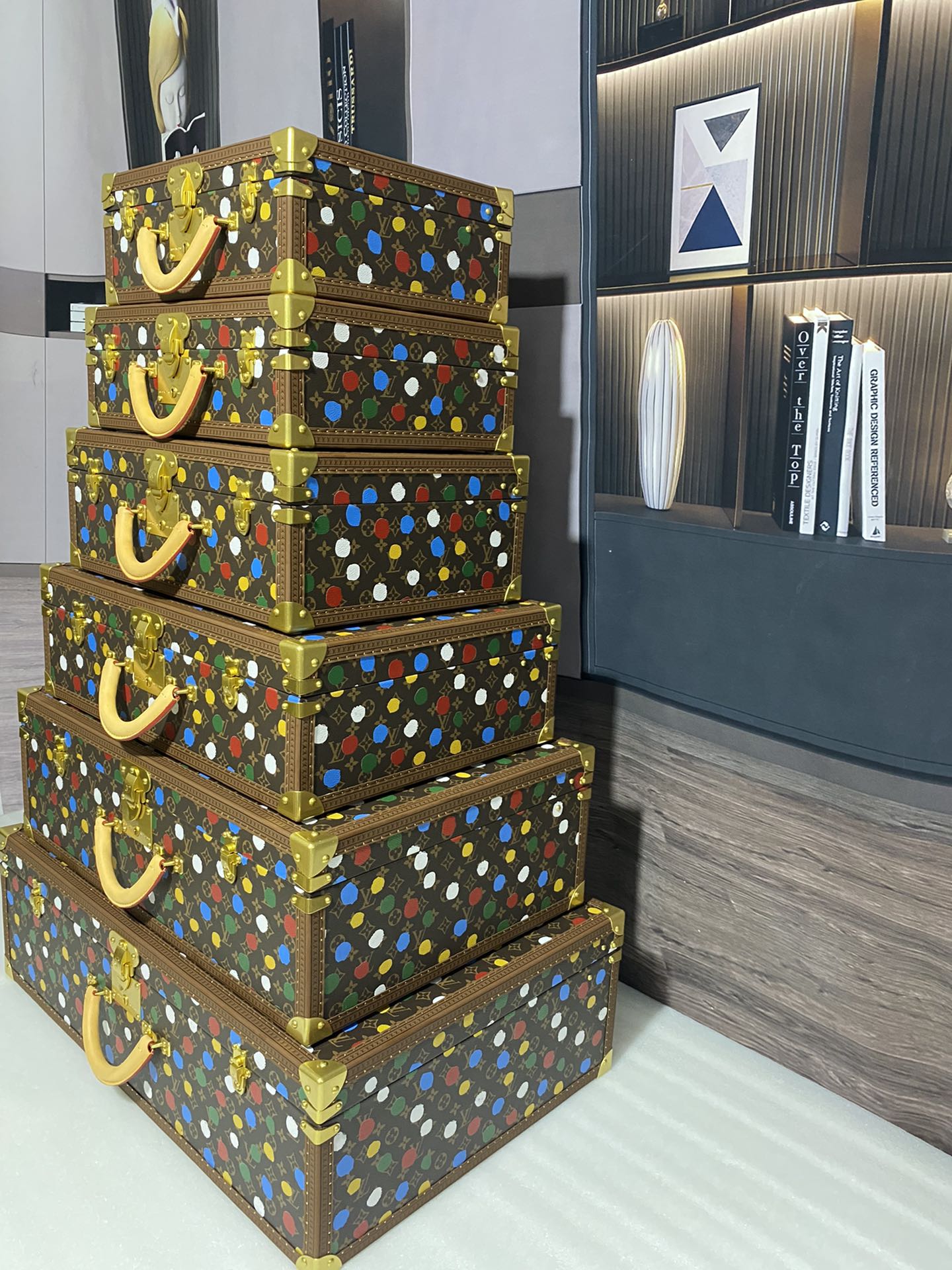 M4700ZX Tower box 40-45-50-60-70-80cm with polka dots and decals, paired with red interior.