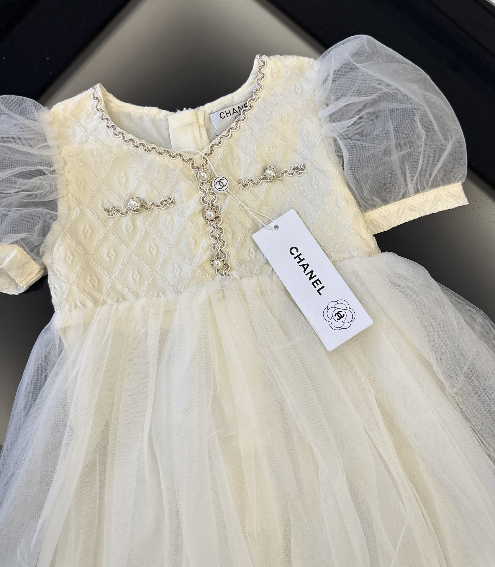 Reserve for 5 days! Chanel, high-end children's clothing, girls' dress, puffed-sleeve design, beautiful when worn, size: 90/100/110/120/130/140cm