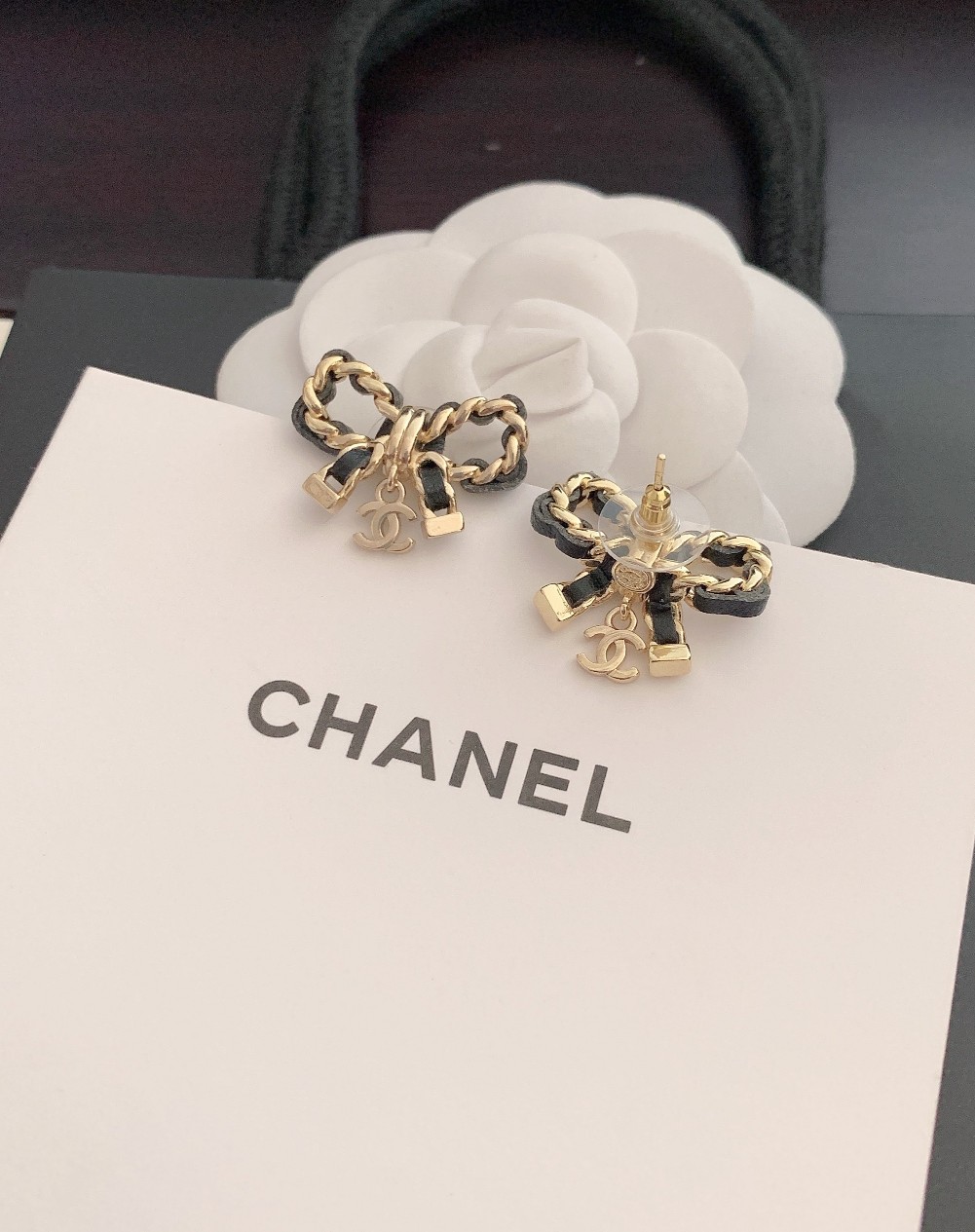 New ch*nel ?? bow ?? stud earrings made of uniform ZP brass 060080Earrings/Ear studs