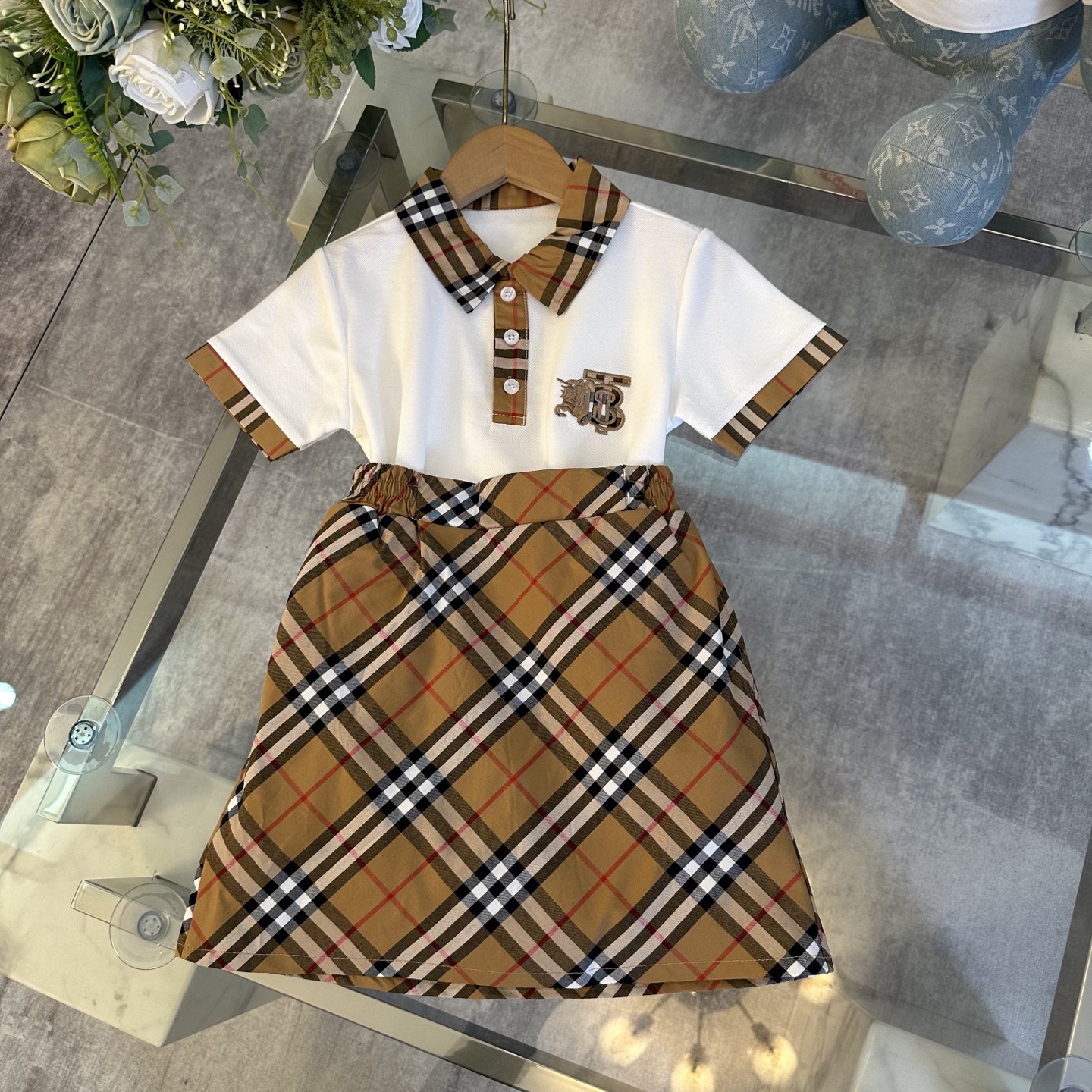 Burberry, Burberry, high-end children's clothes, girls dress, lapel Polo shirts with short sleeves ? short skirt, zhu fabrics, upper body comfortable, good-looking, code number: 110/120/130/140/150/160 cm