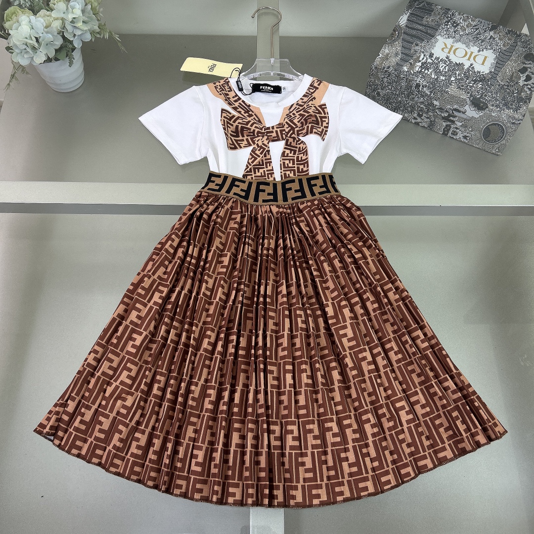 Fendi, high-end children's clothes, girls dress, girls pure cotton fabrics, upper body comfortable, good-looking, code number: 90/100/110/120/130/140/150 cm