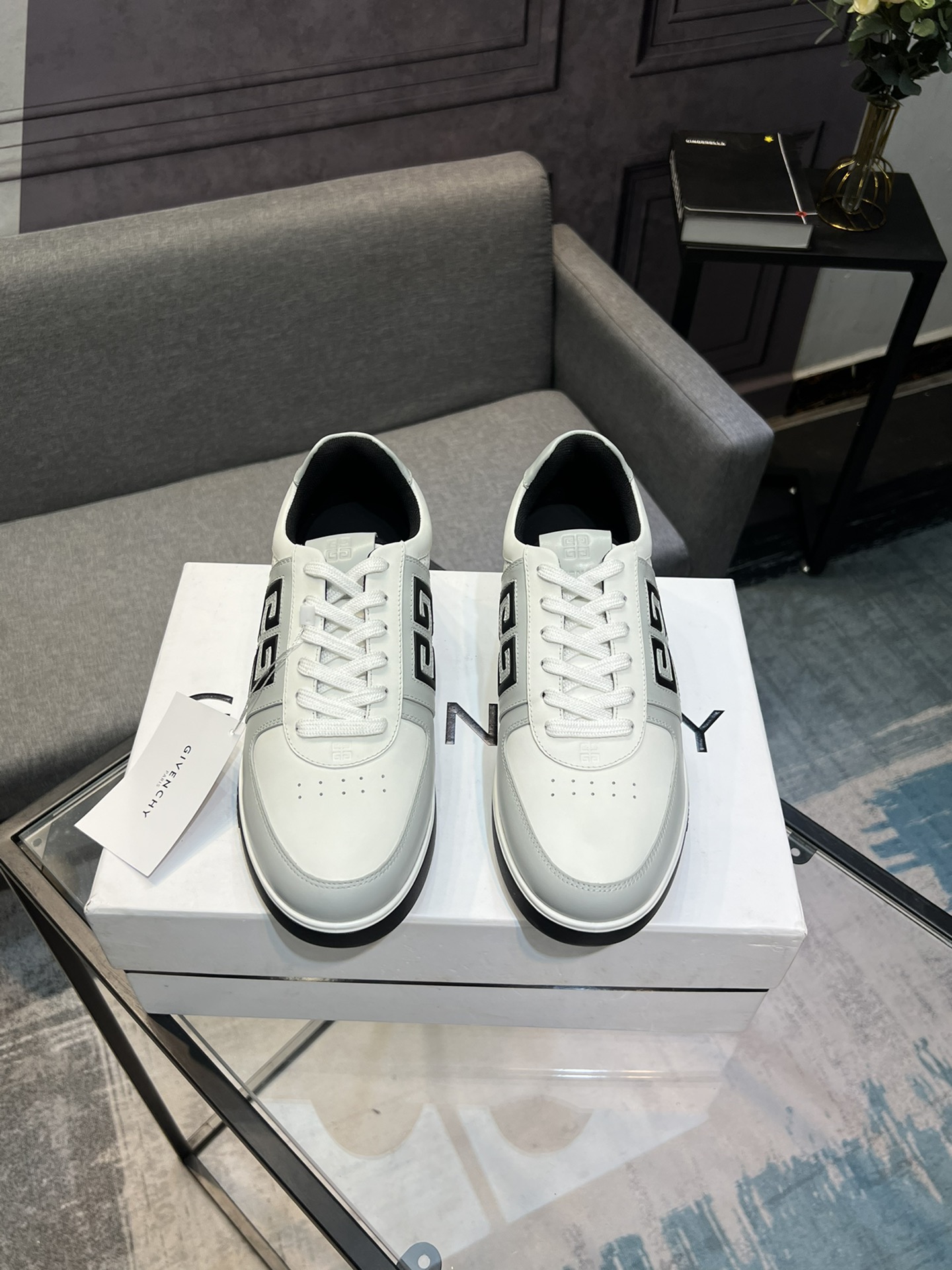 Model No. #3009?????? Givenchy - Givenchy low top jogging shoes. Classic and timeless, the exclusive Givenchy big G LOGO design on both the inner and outer sides features a multi-color combination that fully showcases Givenchy's trendy and individualistic style. The edges of all the leather materials are cut and coated to make them neat and clean! In conclusion, the process is extremely complex. After repeated debugging and development, it has been benchmarked against the original version! Fabric: Silk calfskin with white dragon scale patterns Inside: Original breathable mesh material spliced together Outsole: TPU+ vacuum-formed lightweight sole Footrest: Hang a cowhide logo on the base seat Packaging: Luxurious full set packaging Size: 39-44 Standard shoe sizes (custom-made 38.45)