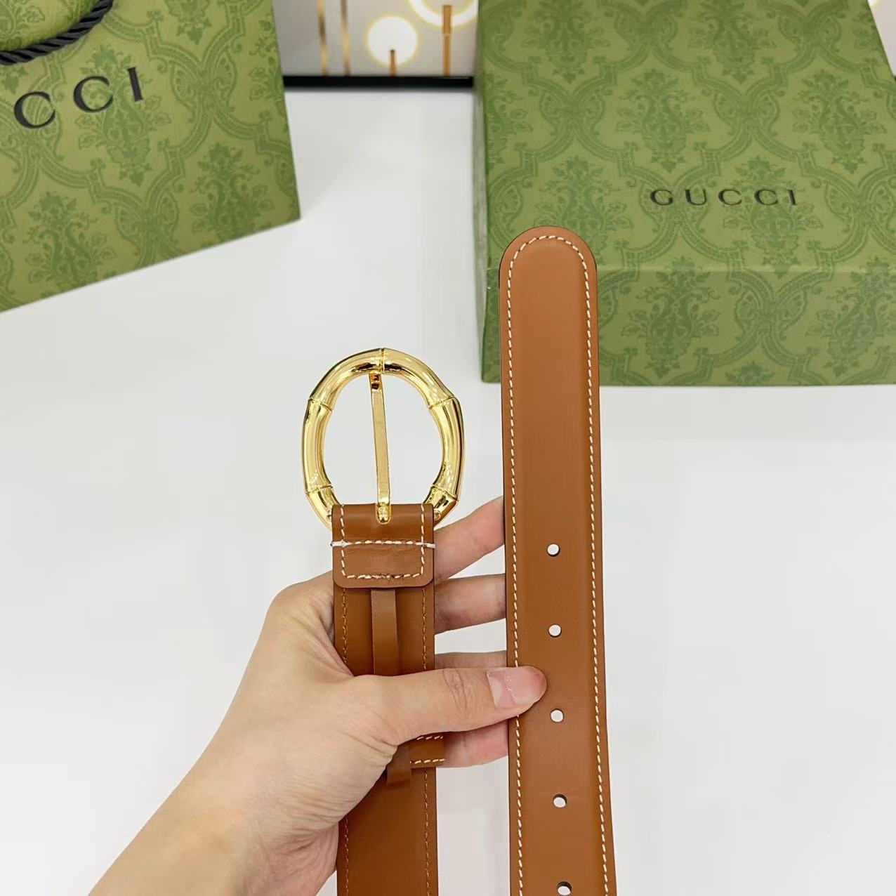 Gucci women's new bamboo buckle with double-sided cowhide and copper buckle, 3.0 cm wide Yards: 75 80 85 90 95 100 105 euros