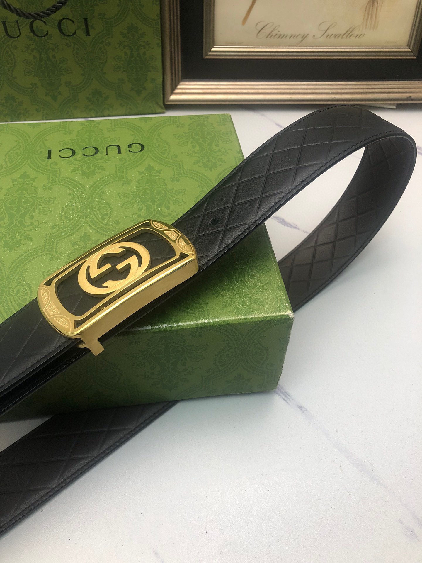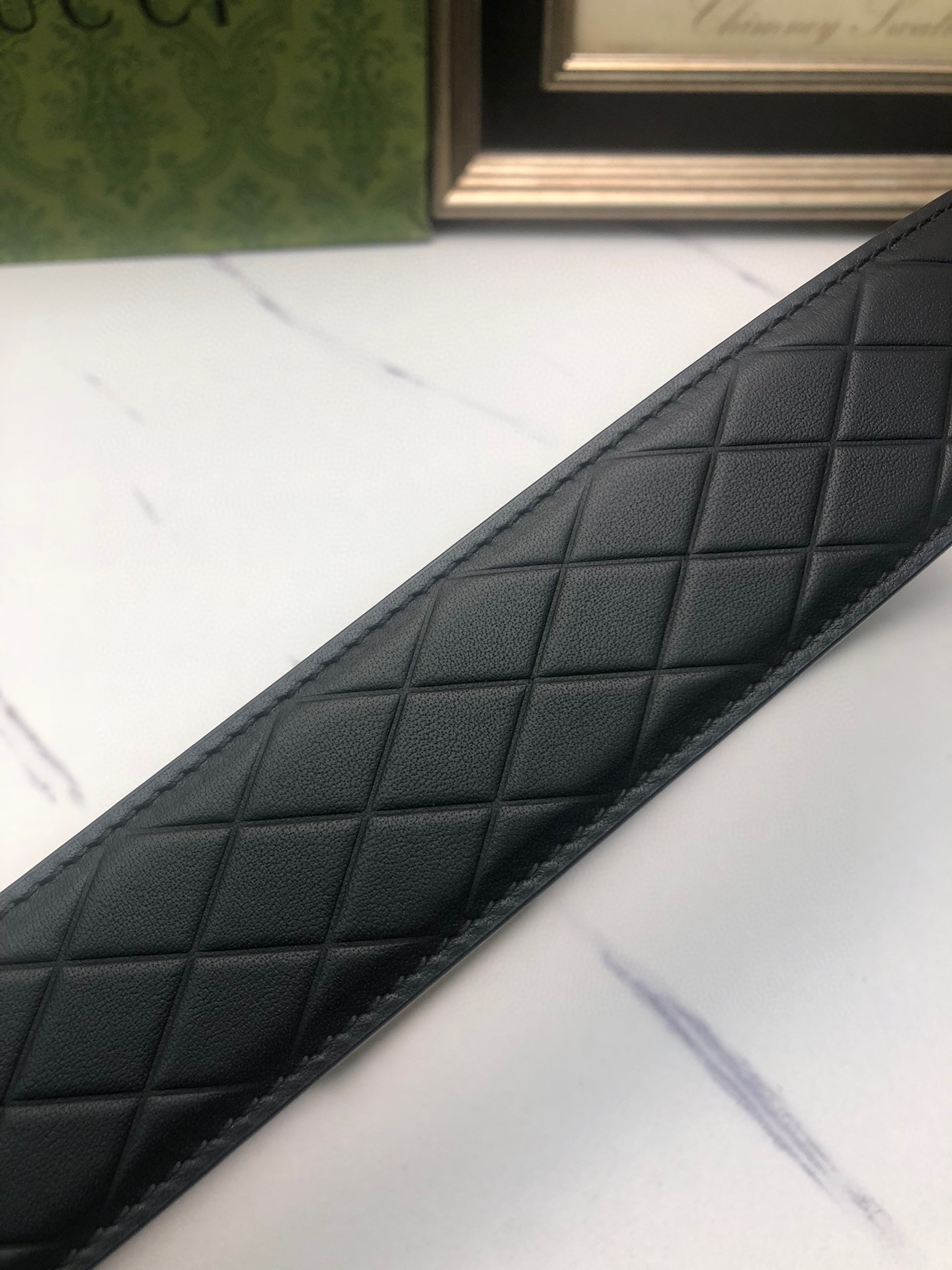 Gucci: Original single-layer calfskin with double-sided embossed patterns, black and brown in one piece, suitable for both sides, decorated with the original single buckle of the logo. The counter width is 4.0