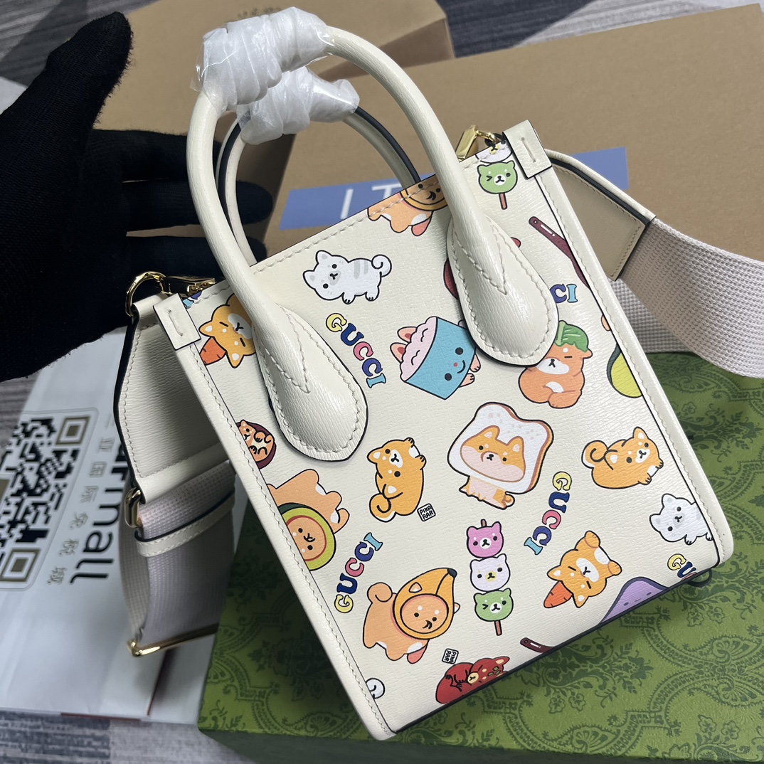 Produced by the Gu family! Original leather ??, model No. 699406, with full green cabinet packaging, American illustrator and designer Angela Nguyen (also known as "Pikarar") draws inspiration from popular culture, anime and animals, and uses vibrant print or embroidery elements to add a touch of charm to ready-to-wear and accessories. On this GG Supreme mini tote bag, its creative inspiration is vividly presented in the form of Gucci animal prints. Size: 16*20*7cm nColor: White animal print