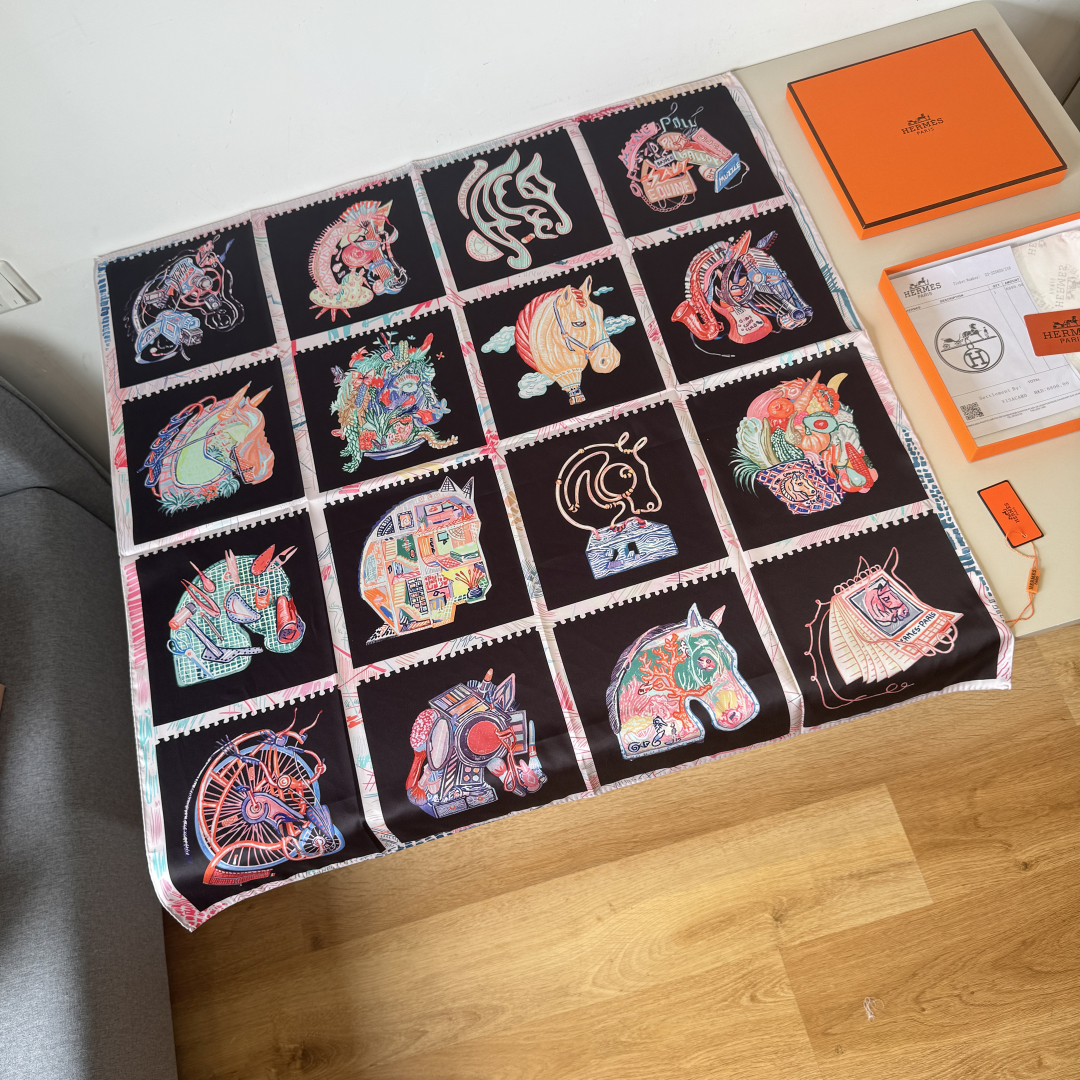 The Hermes handkerchief "Horse Prism" is simply stunning. With its dreamy design, it has become a masterpiece in the private collections of countless collectors! Size: 90*90cm 100% silk