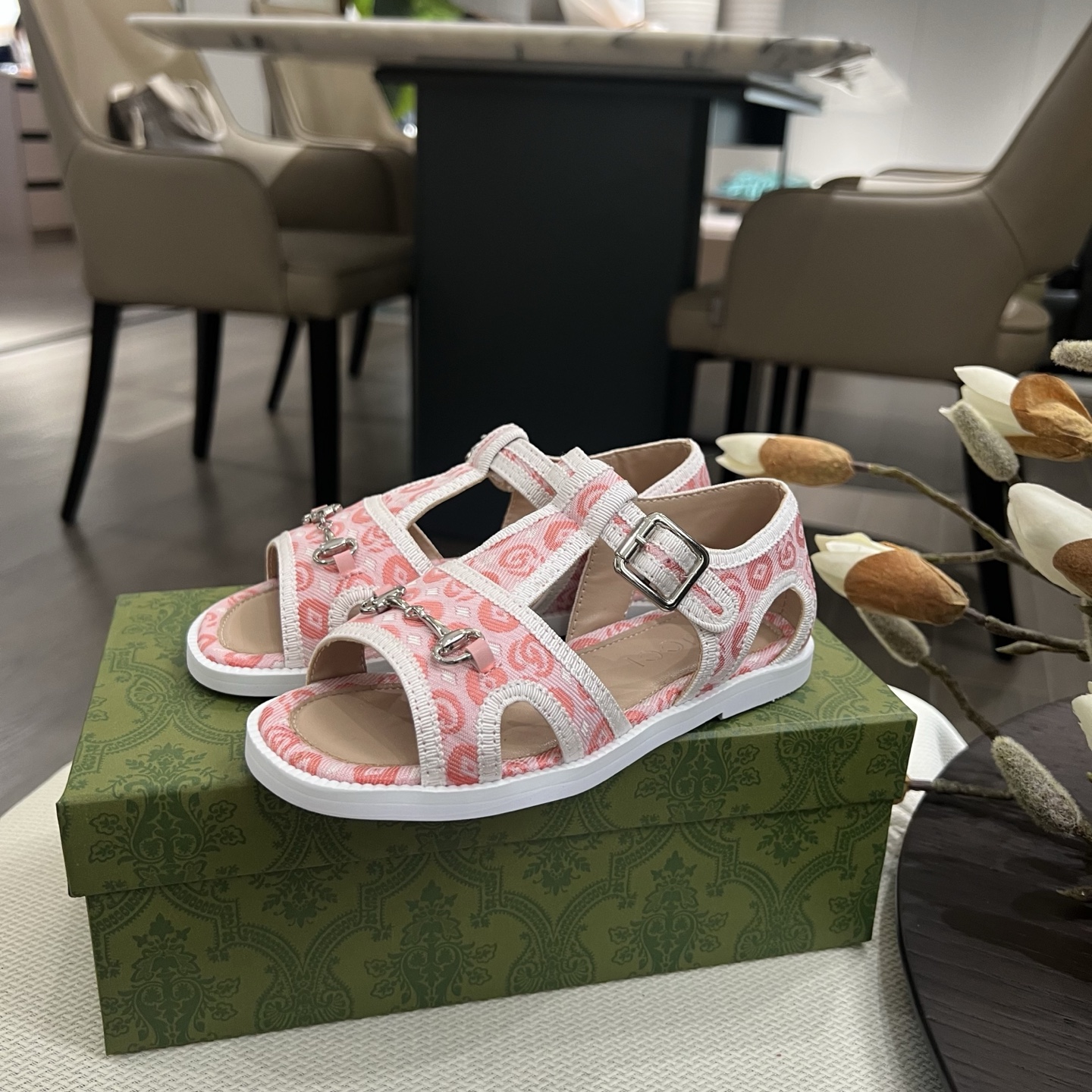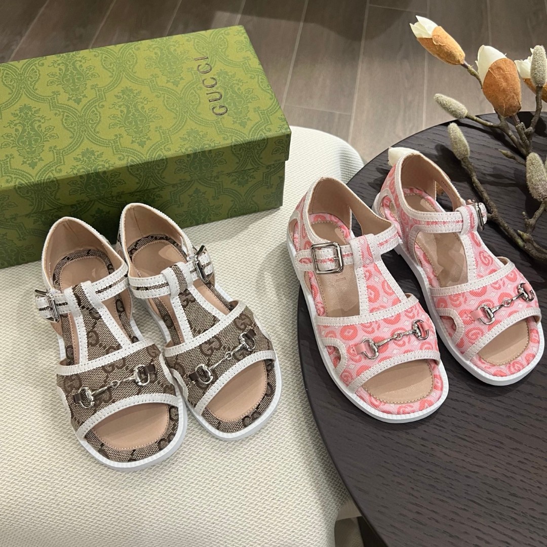 Reservation for 4 days! Gucci HIGH-END children 's shoes, boys' and girls' sandals, classic double G fabric ? classic hardware buckle, COMFORTABLE FIT and GOOD look, size: 26-35