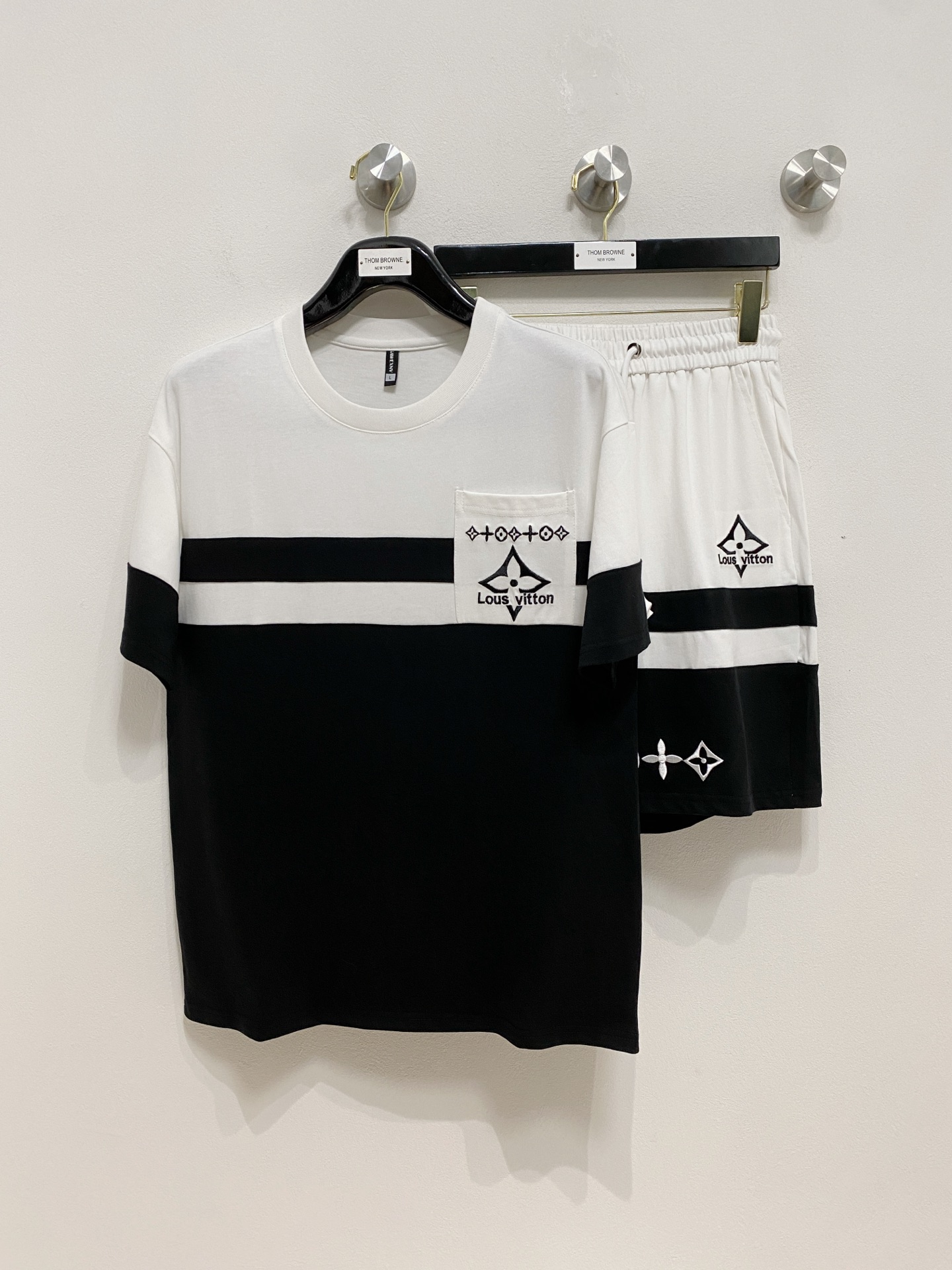 LV ???? high-end custom 2025 spring/summer new collection launch counter the latest short sleeves and shorts casual set high-end custom design avant-garde fashion! The brand logo emphasizes high-end custom pure cotton fabric with meticulous craftsmanship design. Soft to the touch. Comfortable to wear. Counter level exquisite vehicle lines. The workmanship is exquisite. The wearing effect is incredibly cool! Essential items for stylish men! Size: M-3XL