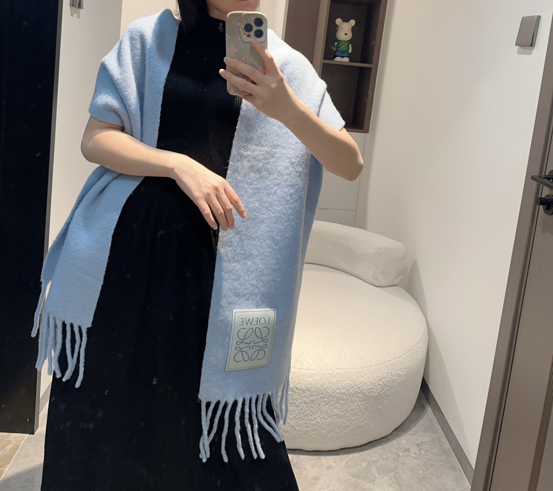 ?? [Xiaohongshu same] Loewe new colorful mohair scarf ?? Warm colors of Stockholm, love at first sight, high appearance level, dreamy color matching ??Loewe scarves are always a pleasant surprise, with Nordic warm color patchwork, super versatile, immerse yourself in various color cards, you can bury your head in the colorful scarf in winter Super WARM ?? Wool + mohair, ?? IS real moHAIR ?? with tassels at both ends, SUPER COMFORTABLE fabric. Coleather logo embossed patch 35x200cm ??