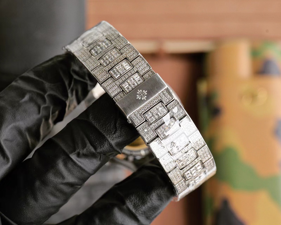 ?? PATEK PHILIPPE Nautilus 5711 white gold Nautilus collection. The all-new upgraded version of the double-row large diamond bezel is perfectly combined with the brand's world-renowned extraordinary jewelry, the starry sky. This luxury Patek Philippe watch features a unique and charming design, representing a masterpiece of perfect craftsmanship and a symbol of a successful person's status. Imported original Cal.8215 automatic mechanical movement, 40x11.5mm in diameter, ultimate luxury watch, 18K white gold Schlova diamond. Super dense and full diamond-encrusted sapphire double-sided crystal mirror surface, calendar display, 50-meter water resistance, super luminous.