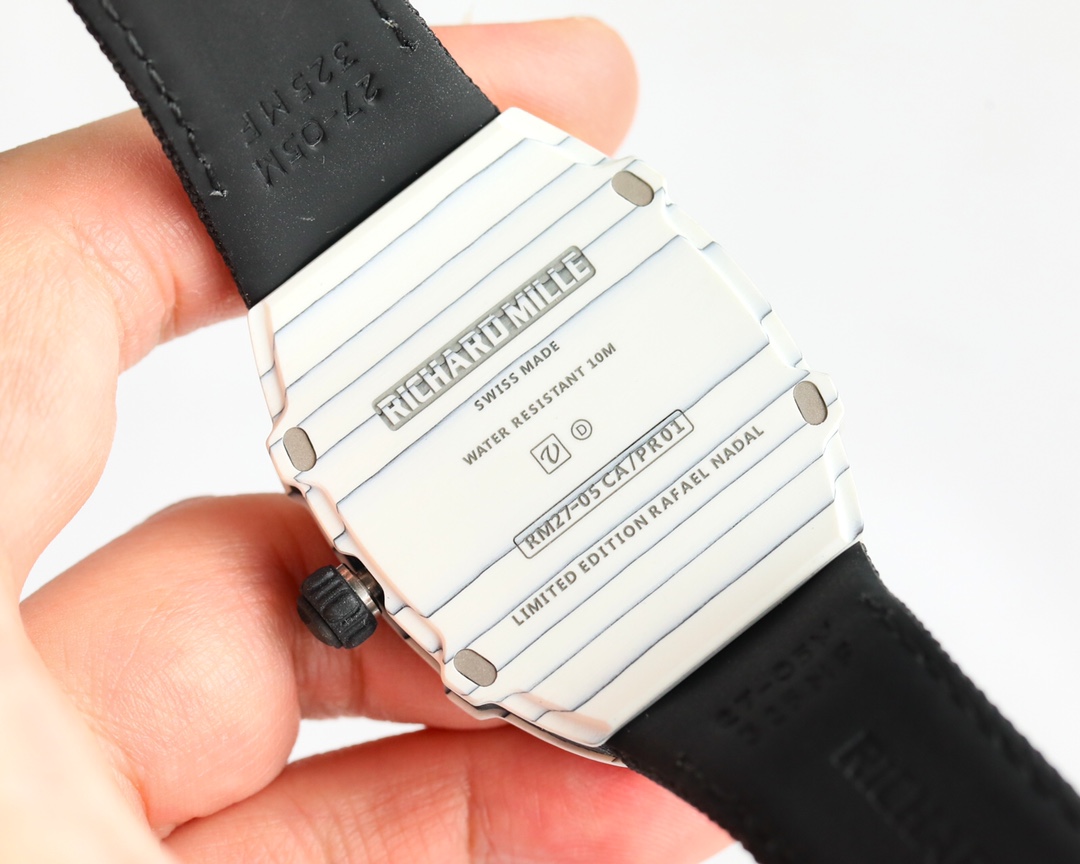 RICHARD MILLE RM 27-05 Flying Tourbillon Rafael Nadal Floating Tourbillon Wristwatch - Ultra-light, ultra-thin The entire wristwatch weighs only 38g (including the strap), and the thickness of the case is approximately 9mm The overall dimensions of the watch are 37.25