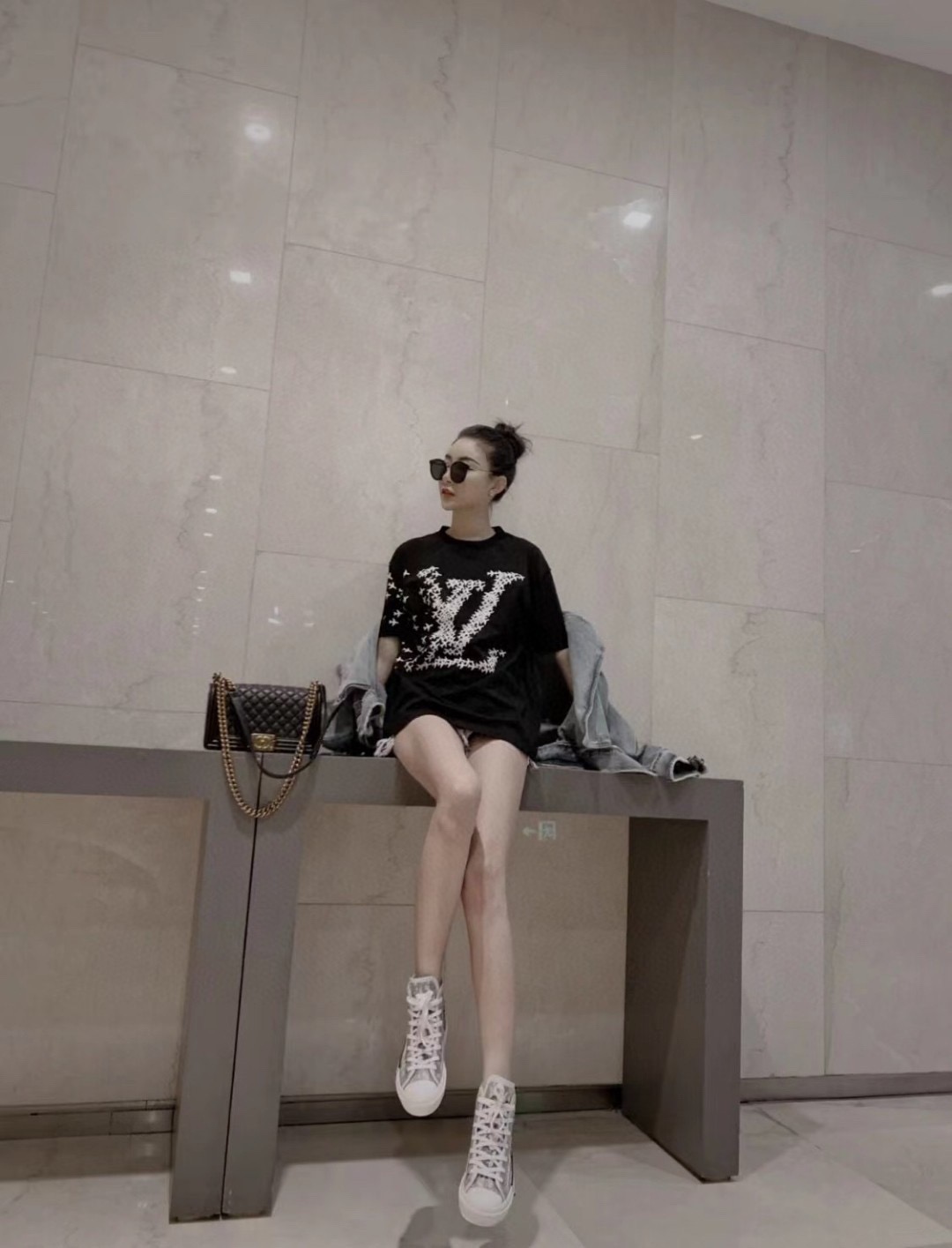 #Louis Vuitton/ Louis Vuitton small airplane letter logo printed short-sleeved top effect