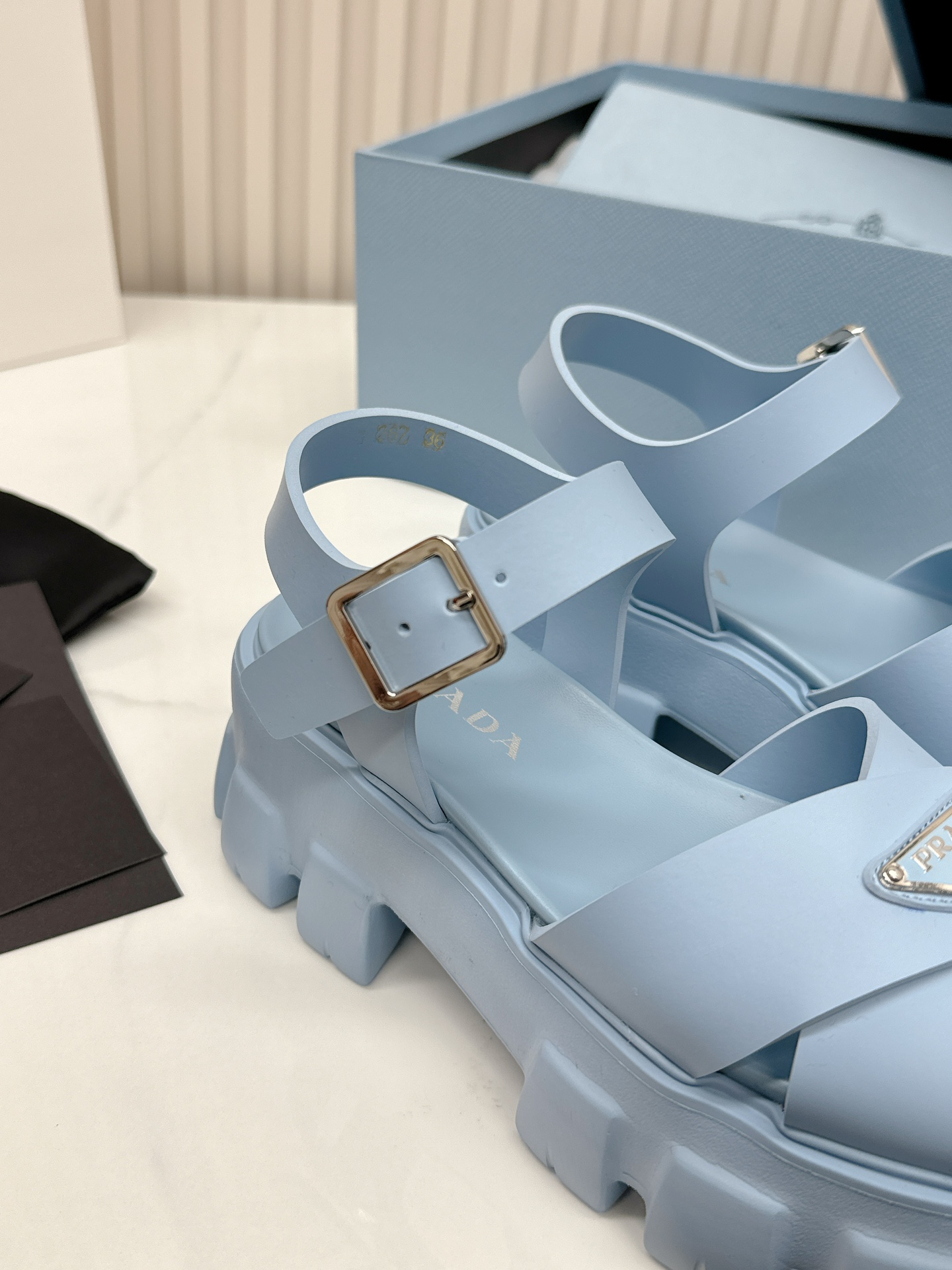 ???? Prada Summer 2024 new Sandals series Thick sole Sandals This is a must-have summer item. Sheepskin texture, soft and fine foot feel, extremely comfortable to pair with. Original molded midsole, original foam technology, perforated outsole, size 35-41