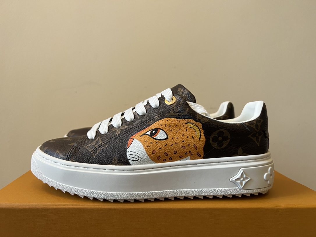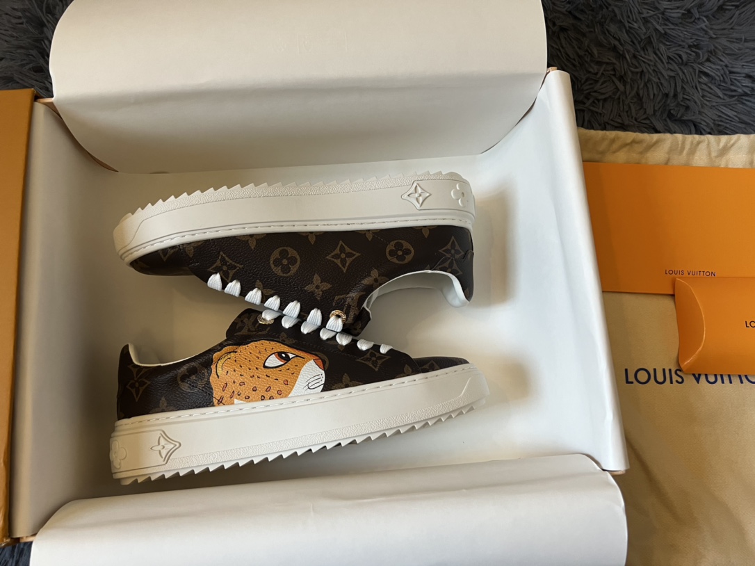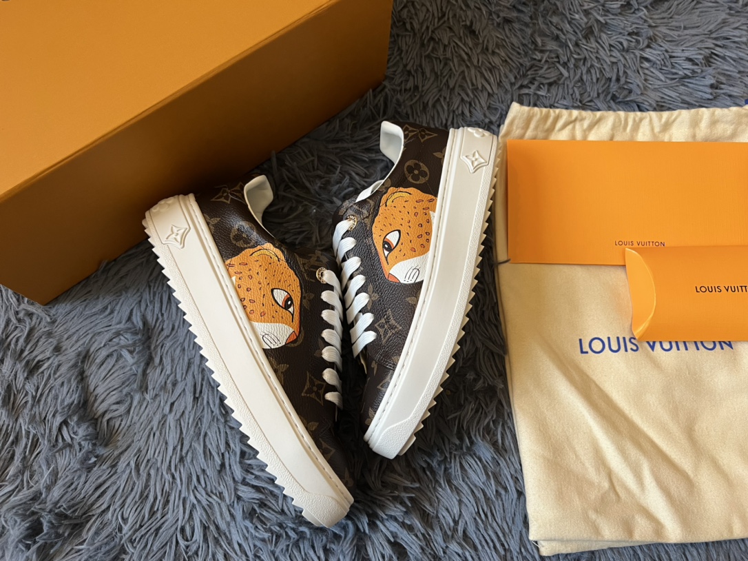 ???? Louis Vuitton Time Out 24 Spring/Summer new sneakers give sneakers ELEGANT and HIGH-END style Easy height increase simple and versatile selected calfskin material water-dyed sheepskin lining TPU outsole Size:35-41