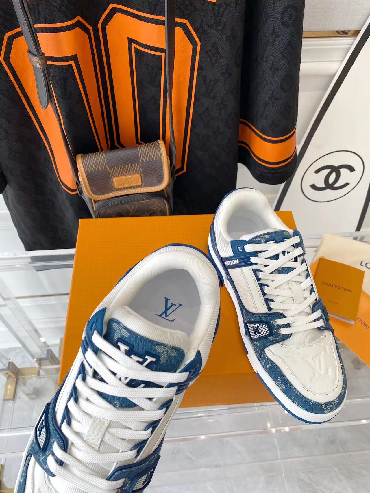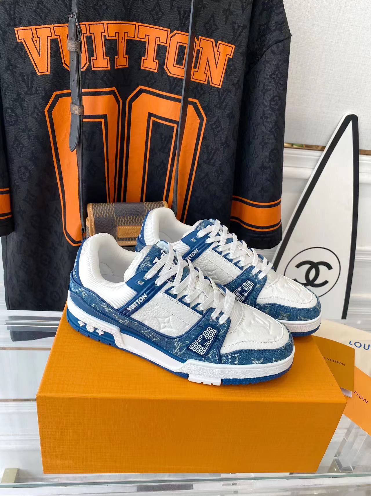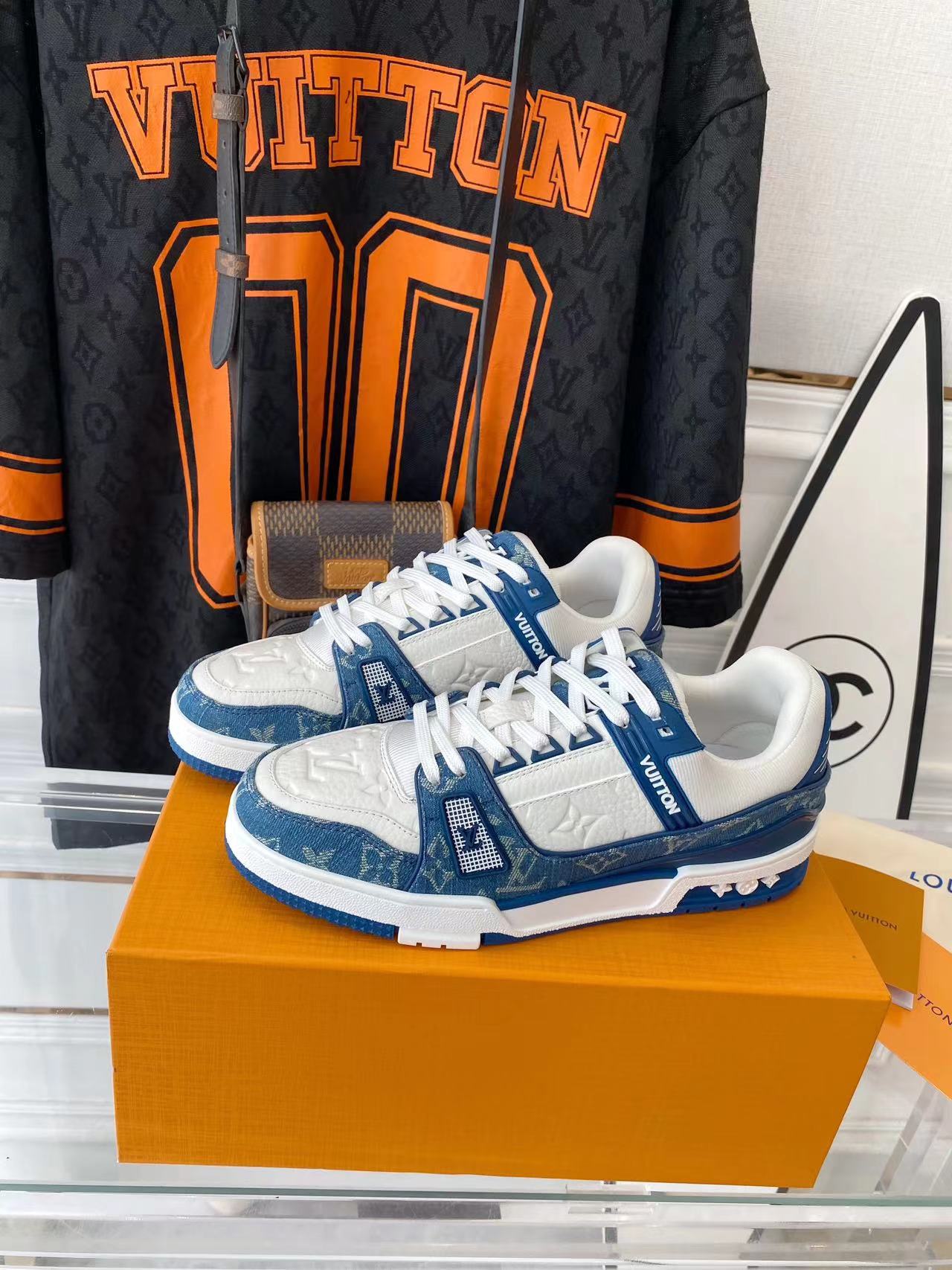???? ??L. The ??TRAINER sneaker, a favorite of Virgil Abloh, the artistic director of men's wear, is made of Monogram embossed calfskin and has a mesh lining. The innovative TPU 3-color outsole is decorated with Monogram flowers.