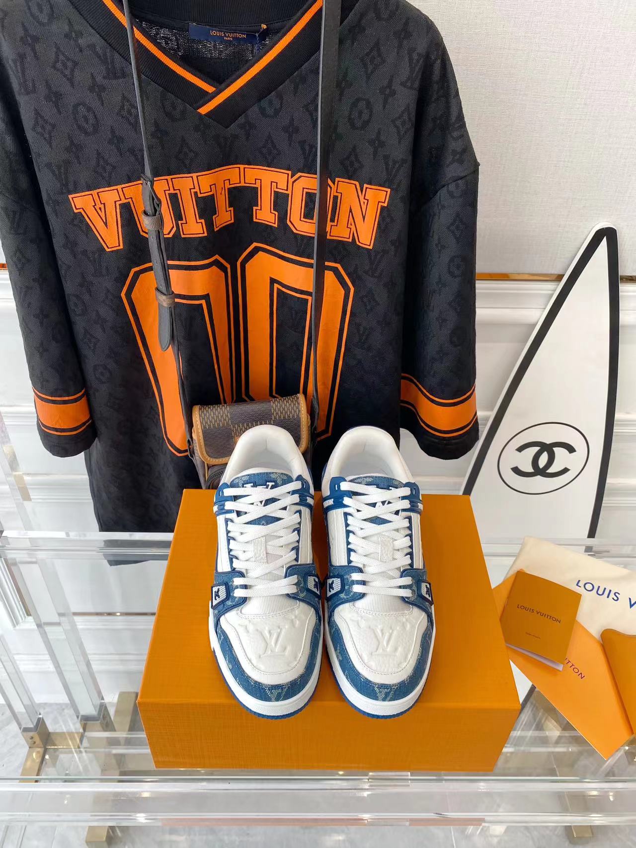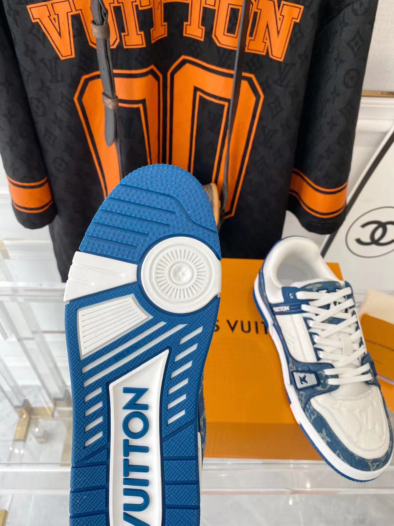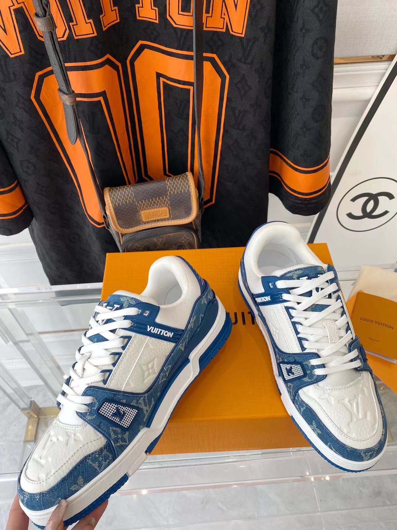 ???? ??L. The ??TRAINER sneaker, a favorite of Virgil Abloh, the artistic director of men's wear, is made of Monogram embossed calfskin and has a mesh lining. The innovative TPU 3-color outsole is decorated with Monogram flowers.