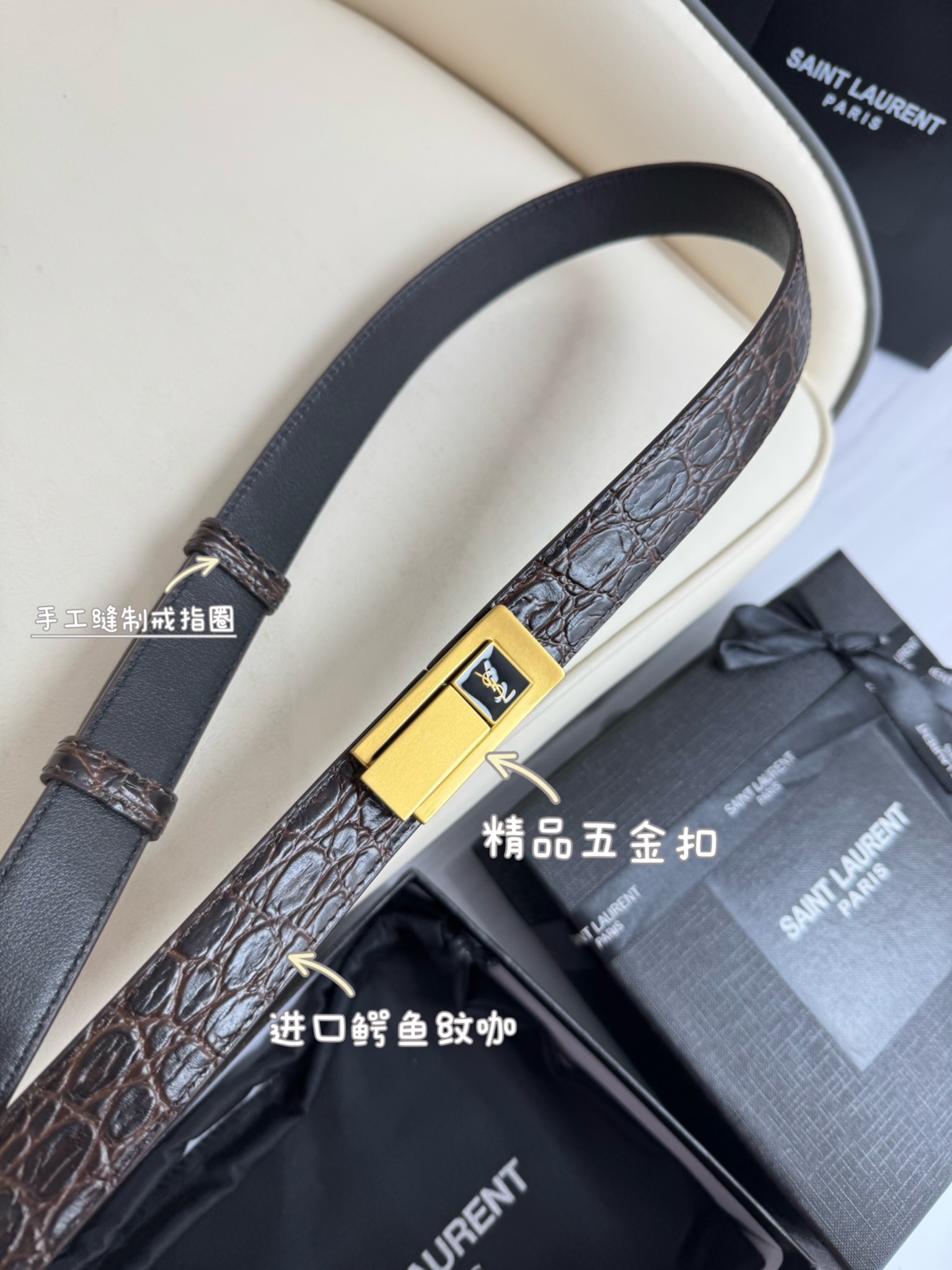 Saint Laurent ladies' belt belt, original factory genuine gold electric ferry buckle, Italian original factory leather, belt width 2.5cm